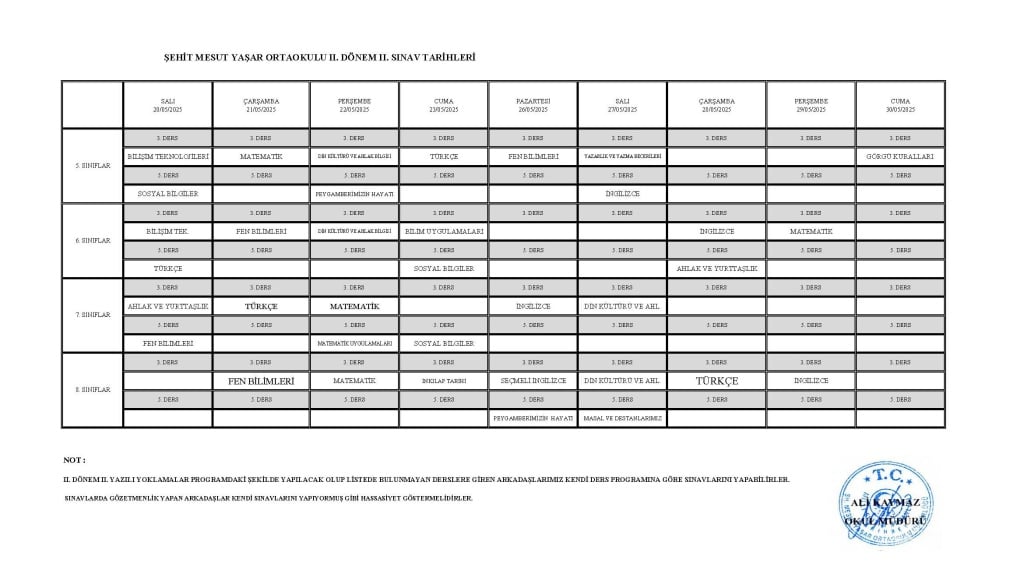 2024 - 2025 EĞİTİM - ÖĞRETİM YILI II. DÖNEM I. ORTAK SINAV TARİHLERİ