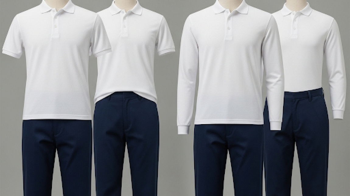 OKUL FORMAMIZ BEYAZ LAKOS TİŞÖRT ve LACİVERT KUMAŞ PANTOLONDUR